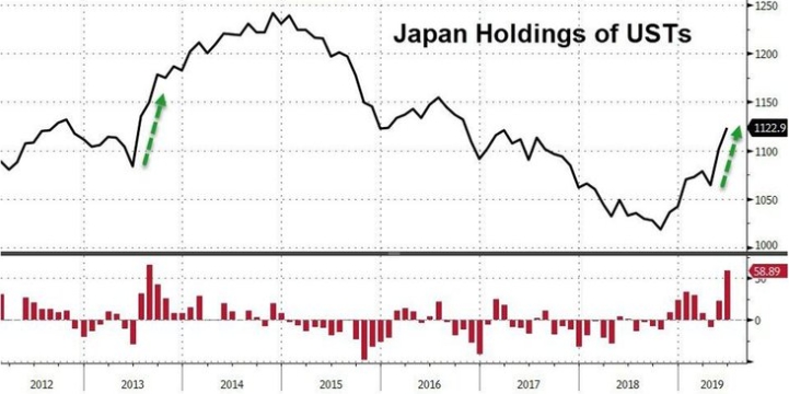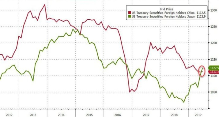 Крупнейшим держателем госдолга США стала Япония — впервые с мая 2017 г. ЦБ страны купил в июне трежерис почти на $22 млрд, а за период с мая по июнь — почти $60 млрд. Это самые масштабные покупки с 2013 г.