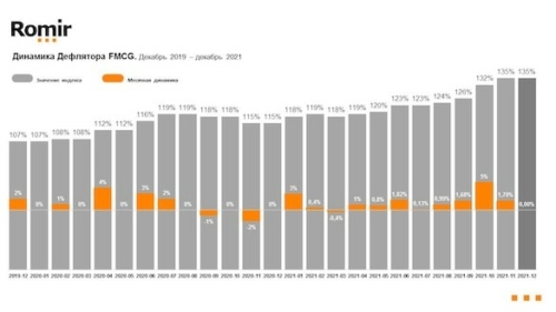 «В течение прошлого года цены на продукты держались на высоком уровне. И если в конце 2020 года происходила стабилизация цен после противокоронавирусных ограничений, то во второй половине 2021 года рост цен, наоборот, ускорился», — отмечает исполнительный директор «Ромира» Инна Караева.