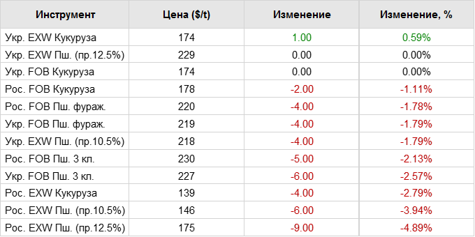 Цены FOB и EXW на 11 мая 2020. Россия, Украина.