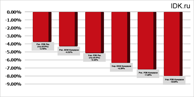 Цены FOB и EXW на 14 апреля 2025. Пшеница. Кукуруза