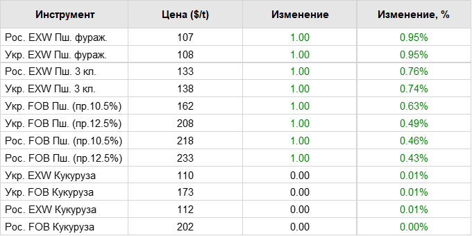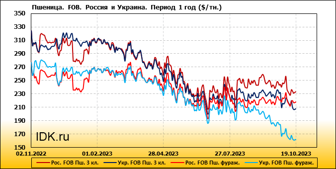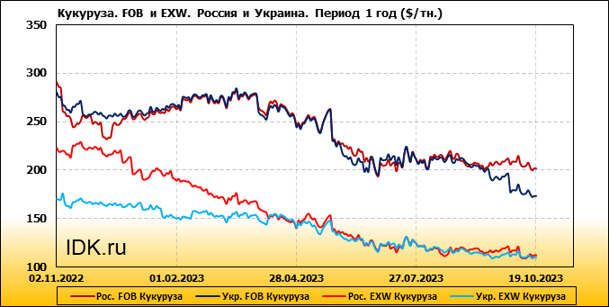 Цены FOB и EXW на 19 октября 2023. Пшеница. Кукуруза