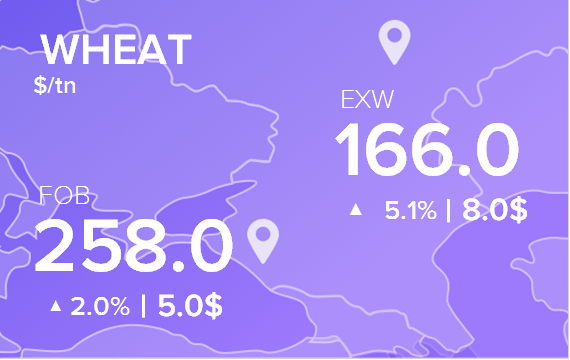 Цены FOB и EXW на 24 февраля 2025. Пшеница. Кукуруза