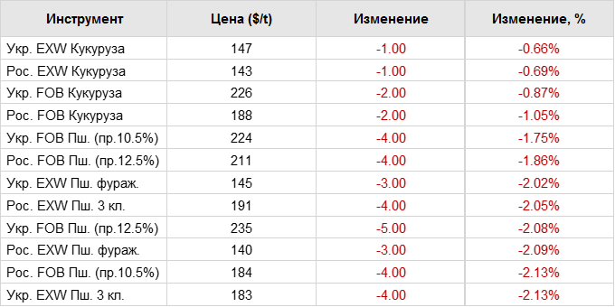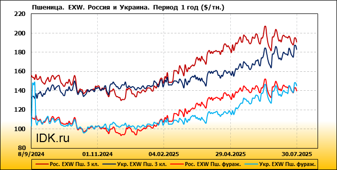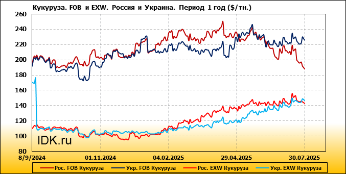 Цены FOB и EXW на 30 июля 2025. Пшеница. Кукуруза