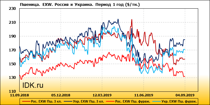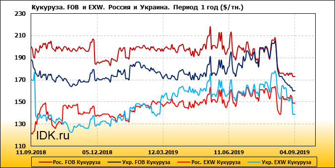 Цены FOB и EXW Россия, Украина. Данные на 04.09.19