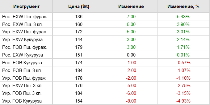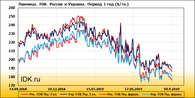 Цены FOB и EXW Россия, Украина. Данные на 09.09.19