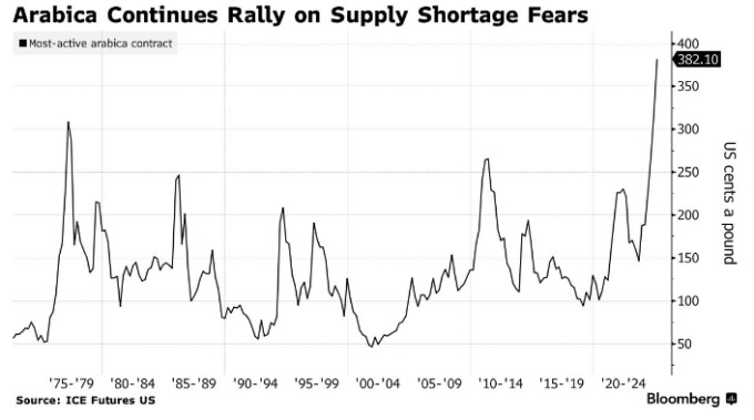 Кофе демонстрирует самый продолжительный рост за 45 лет из-за проблем с поставками