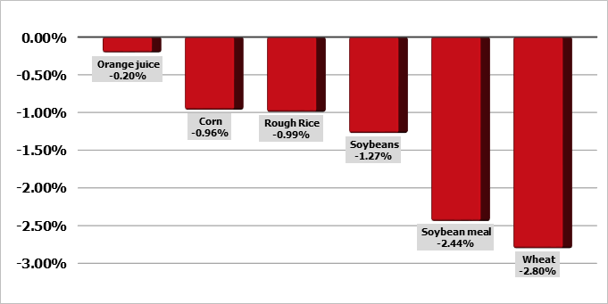 По данным торгов, стоимость фьючерса на поставку пшеницы в сентябре 2023 года на бирже снизилась более чем на 5,3% до уровня 6,66 доллара за бушель в сравнении с показателем 7,04 доллара за бушель на момент закрытия торгов 28 июля.