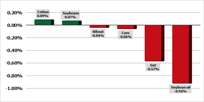 В пятницу котировки пшеницы в США и Европе закончили неделю повышением, после общего падения накануне. Наибольший рост дали британские пшеничные контракты. Пшеница в США поднялась в меньшей динамике. И совсем незначительно повысились французские ближние контракты. Американская кукуруза и соя остались в прошлом тренде, кукуруза выросла, а соя снизилась. На валютном рынке к концу недели доллар продолжал расти к фунту, а еще резче к евро. Европейские котировки теряют стоимость в американском номинале. В Лондоне котировки пшеницы поднялись на 0,7%, в Париже на 0,1%, а в Чикаго на 0,5%. Кукуруза выросла на 0,5%, а соя упала на 0,2%.