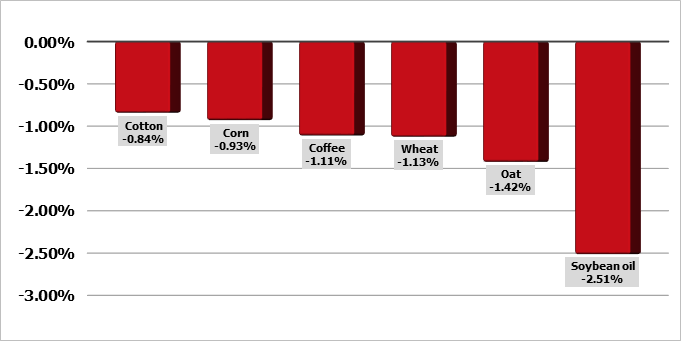 Министерство сельского хозяйства США сообщило, что за неделю, закончившуюся 2 февраля, на экспорт было продано 1,6 млн тонн кукурузы старого урожая. Это было выше оценок, во главе с продажами в Японию и неизвестные направления. Накопленные обязательства составили 1,05 барреля по недельным данным, что составляет 55% от прогноза Министерства сельского хозяйства США. По состоянию на 2 февраля обязательства по новому урожаю составляли 1,44 млн тонн, что соответствует темпам форвардных продаж в прошлом году. В Аргентине прогнозировалось снижение урожая на 5 млн т до 47 млн т, а в Бразилии — 125 млн т.