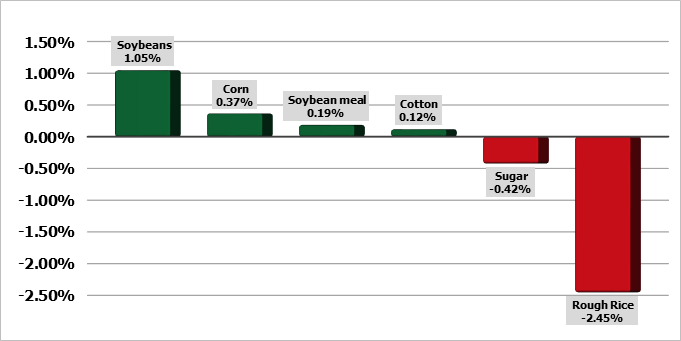 Фьючерсы на соевые бобы отыграли пятничные потери, повысившись в понедельник на 10-13 центов. Фьючерсы на соевую муку выросли на 30 центов за тонну в октябрьском контракте. Фьючерсы на соевое масло в октябре выросли на 94 пункта. Утренний отчет FGIS об экспорте показал, что за неделю, завершившуюся 5 сентября, было отгружено 345 166 тонн соевых бобов. Это значительно меньше, чем на предыдущей неделе, и на 5,22% меньше, чем на той же неделе прошлого года. Всего за последние пару дней было отгружено 91 709 млн тонн, а всего за текущий МГ было проинспектировано 262 457 млн тонн. В Индонезию было отправлено 67 613 тонн, а в Китай — 58 267 тонн.