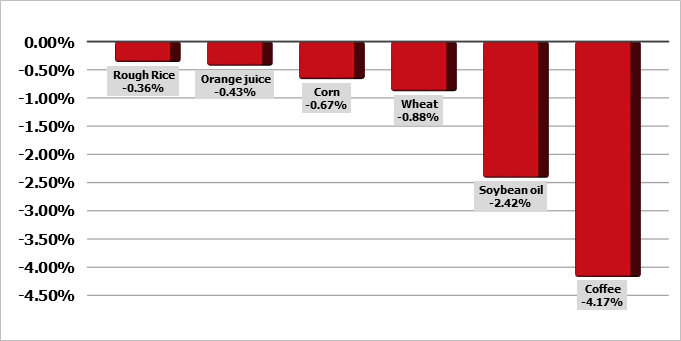 Соевые бобы торговались с небольшим откатом в среду утром, снижаясь на 3-4 цента. На сессии вторника фьючерсы держались, так как USDA внесло минимальные изменения в балансы США и мира. На момент закрытия контракты выросли на 3 ¾ — 5 ¼ цента. Фьючерсы на соевую муку выросли на 1,70-2,70 долларов за тонну на момент закрытия. За ночь было осуществлено еще 456 поставок по декабрьским фьючерсам на соевую муку. Фьючерсы на соевое масло снизились на 5-12 пунктов за сессию. Министерство сельского хозяйства США решило не спешить с отчетом по балансу соевых бобов в этом месяце, не внеся никаких изменений, за исключением средней цены наличными, которая была снижена на 60 центов до $10,20.