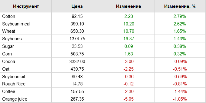 Фьючерсы на кукурузу в Чикаго упали во вторник после того, как еженедельный отчет правительства США показал улучшение состояния посевов после дождей в зерновом поясе Среднего Запада, в то время как соевые бобы подорожали. Цены на пшеницу выросли впервые за четыре сессии из-за опасений по поводу сокращения мировых поставок. Наиболее активные контракты на кукурузу на Чикагской товарной бирже (CBOT) снизились на 0,2% до 4,98-1/2 доллара за бушель по состоянию на 03:36 по Гринвичу, а соевые бобы выросли на 0,5% до 13,52-1/2 доллара за бушель. Пшеница прибавила 0,5% до 6,49-1/4 доллара за бушель.