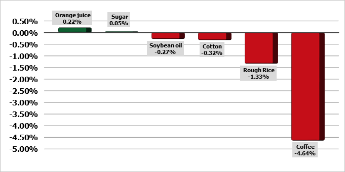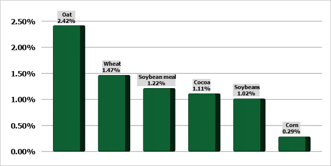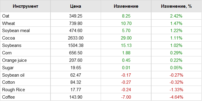 Кукуруза упала на 0,1% до 6,54-1/4 доллара за бушель, в то время как соевые бобы выросли на 0,2% до 14,87-1/2 доллара за бушель.