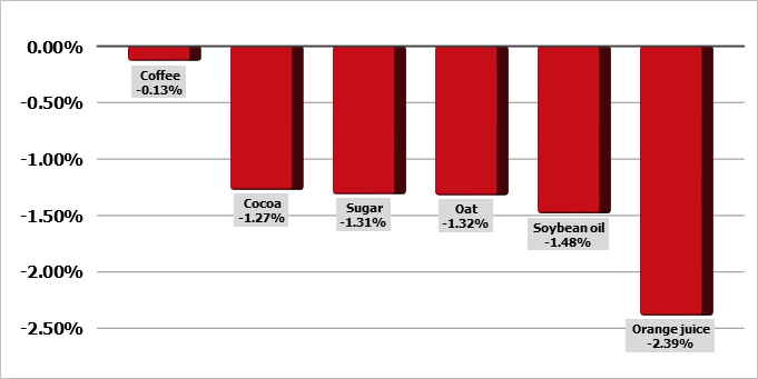Фьючерсы на сою в Чикаго снизились в среду, потеряв часть прибыли на прошлой сессии, поскольку небывалый урожай в Бразилии и спад на рынках растительного масла нивелировали поддержку урожая Аргентины от потерь из-за засухи. Самый активный контракт на сою на Чикагской товарной бирже (CBOT) Sv1 подешевел на 0,2% до $14,95 за бушель к 11:47 по Гринвичу. Производство сои в Аргентине упадет до 23-летнего минимума, а производство кукурузы — до пятилетнего минимума из-за засухи, заявило во вторник Министерство сельского хозяйства США (USDA), резко понизив прогнозы урожая в Аргентине.