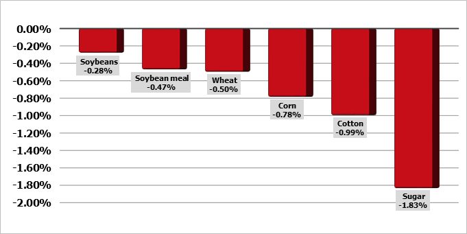 Мартовские фьючерсы на чикагскую пшеницу SRW подешевели в четверг на 6 1/2 цента. За ночь было осуществлено еще 5 поставок декабрьской пшеницы CBT. Контракты KC HRW снижались на 6 ½ цента за день. Мартовские фьючерсы на яровую пшеницу MPLS снизились на 5 ¾ цента. Еженедельный отчет о продажах на экспорт показал, что на неделе до 5 декабря было продано 290236 млн тонн пшеницы, что оказалось ниже прогнозов в диапазоне от 275000 до 600000 тонн. Это стало 11-недельным минимумом для продаж и снизилось на 23,27% по сравнению с прошлой неделей. Продажи были разрозненными, Филиппины купили 92000 тонн, а Мексика — 73700 тонн.