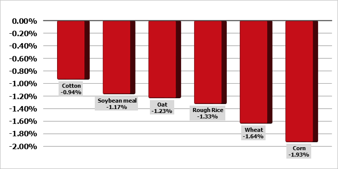 Урожай пшеницы в Аргентине снижен до 16,7 млн. тонн с предыдущего прогноза в 17 млн. тонн из-за продолжительной засухи, сообщает Зерновая биржа Росарио (BCR). Согласно этой оценке, производство пшеницы в Аргентине, крупном мировом экспортере, будет самым низким за пять лет, сообщила биржа. Засуха, начавшаяся в середине этого года, привела к серьезным потерям посевных площадей пшеницы в Аргентины. Производство в провинции Кордова находится в ситуации «катастрофы», которая может усугубиться, говорится в ежемесячном отчете BCR об урожае, провинция может зарегистрировать худший урожай зерновых за 20 лет.