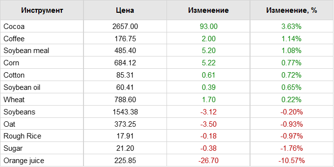 Соевые бобы подскочили до семимесячного максимума из-за опасений по поводу засухи в Аргентине и обильных дождей в Бразилии. Соевые бобы выросли на 0,1% до 15,44 доллара за бушель. Стоимость соевого шрота оставалась на самом высоком уровне с 2014 года, достигнутого в пятницу, а март удерживал уровень выше 500 долларов на уровне 503,2 доллара за тонну. Трейдеры сои следят за прогнозами, прогнозирующими дожди в Аргентине в ближайшие дни, хотя ливни могут пропустить некоторые пострадавшие от засухи посевные пояса. Ожидания рекордного урожая сои в Бразилии умерили опасения по поводу потерь в Аргентине, но проливные дожди угрожали задержать сбор урожая.