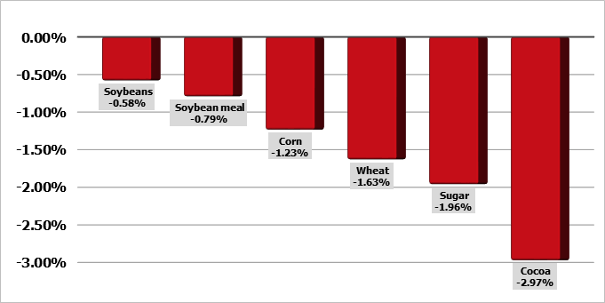 Пшеничный комплекс во вторник торговался с понижением контрактов в полдень. Фьючерсы на SRW в Чикаго к полудню снизились на 5-6 центов. Фьючерсы на яровую пшеницу в Канзас-Сити теряли от 4 до 5 центов в полдень. Фьючерсы на яровую пшеницу MPLS во вторник снижались на 3-5 центов. Министерство сельского хозяйства Франции оценивает урожай мягкой пшеницы в стране в 4,61 га (11,44 млн акров), что на 10% больше, чем в прошлом году. По данным Зерновой биржи Буэнос-Айреса, урожай пшеницы в Аргентине в 2025/26 году составит 20,5 млн тонн, что выше 18,6 млн тонн в прошлом году.