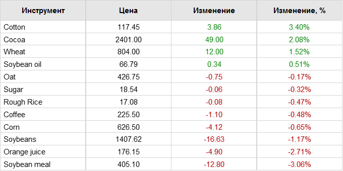 Прогнозы погоды в США о дождях в ближайшие недели могут помочь засушливым посевам сои, что окажет дополнительное давление на рынки. Наиболее активный контракт на сою на Чикагской торговой бирже потерял 46-1/4 цента до 14,08 доллара за бушель к 15:48 по Гринвичу, после падения до 13,86 доллара ранее в ходе сессии, самого низкого уровня с 4 августа.