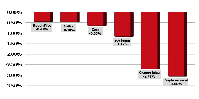 Чикагские соевые бобы подешевели более чем на 3,5% в понедельник, что стало их первым снижением за три сессии после неожиданных данных из Китая, которые показали снижение спроса на сельскохозяйственные товары США.