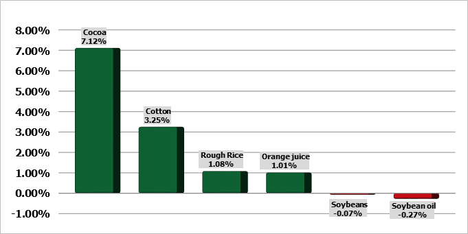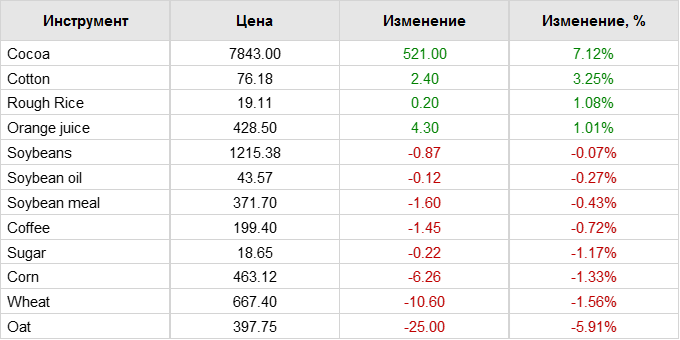 Фьючерсы на пшеницу в Чикаго снизились во вторник после достижения самого высокого уровня с июля прошлого года, поскольку цены столкнулись с сопротивлением на графике, а трейдеры стремились получить более четкую картину влияния сухой и холодной погоды на урожай в России, крупнейшем экспортере пшеницы. Цены на кукурузу выросли, в то время как цены на сою упали, поскольку инвесторы оценили потери урожая в Южной Америке и прогресс посевов в США. Самый активный контракт на пшеницу на Чикагской торговой бирже (CBOT) Wv1 к 12:19 по Гринвичу снизился на 1,0% до $6,80 за бушель. Ранее он вырос до $6,96, что немного выше предыдущего пика за 9,5 месяцев, достигнутого в понедельник, но снова не достиг психологического порога в $7. Котировки кукурузы CBOT Cv1 прибавили 0,3% до $4,73-3/4 за бушель после достижения максимума с конца декабря. Цены на соевые бобы Sv1 упали на 0,8% до $12,09-1/4 за бушель, что сдерживалось слабостью соответствующих рынков растительного и минерального масла.