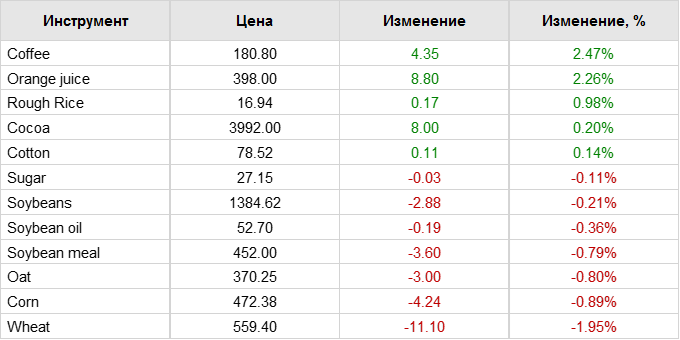 В среду фьючерсы на соевые бобы в США достигли 2,5-месячного максимума на фоне опасений, что неблагоприятная погода приведет к сокращению урожая в ведущем производителе Бразилии, что спровоцировало ралли, которое привело к росту цен на 11% за последние пять недель. Фьючерсы на кукурузу и пшеницу снизились. Самый активный контракт на соевые бобы на Чикагской торговой бирже (CBOT) снизился на 0,1% до $13,88 за бушель к 04:04 по Гринвичу после достижения $13,92-1/4, самого высокого уровня с 30 августа, ранее на сессии. Кукуруза CBOT подешевела на 0,4% до $4,76-1/2 за бушель, а пшеница упала на 0,2% до $5,71 за бушель. Компания AgRural в понедельник понизила свой прогноз урожая сои в Бразилии в 2023/24 году на 1,1 миллиона тонн до 163,5 миллиона тонн и заявила, что дальнейшее сокращение возможно до конца месяца.
