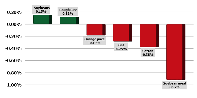Пшеница снизилась в диапазоне торгов, сделав паузу после четырехдневного отскока от 18-месячных минимумов, установленных на прошлой неделе. Участники рынка ждут новостей о возобновлении экспортной сделки по Черному морю. Министерство сельского хозяйства США сообщило об экспортных продажах американской пшеницы за неделю, закончившуюся 9 марта, на уровне 492 600 тонн (объем прошлого и нового урожая), что соответствует торговым ожиданиям на уровне от 75 000 до 650 000 тонн. Мягкая красная озимая пшеница в последний раз торговалась с понижением на 3 цента по $6,99-3/4 за бушель. Майская красная озимая пшеница в последний раз подешевела на 1/2 цента до $8,19-1/4 за бушель, а майская яровая пшеница снизилась на 2 цента до $8,50-1/2 за бушель.
