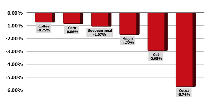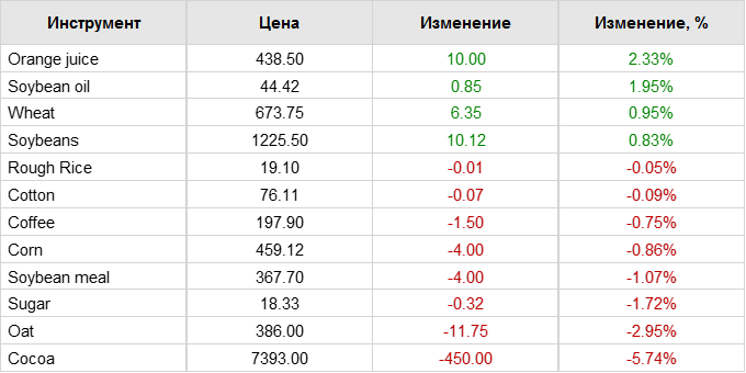 Фьючерсы на пшеницу в Чикаго снизились в четверг, поскольку надежды на высокие урожаи в США ослабили опасения по поводу потерь урожая в России, крупнейшем экспортере, что привело к росту цен до 10-месячных максимумов на этой неделе. Фьючерсы на соевые бобы выросли, поскольку опасения по поводу наводнения в Бразилии компенсировали данные, показывающие снижение спроса на бобы со стороны американских переработчиков сои. Кукуруза также немного подорожала, несмотря на прогноз более сухой погоды на Среднем Западе США, благоприятной для посевов. Самый активный контракт на пшеницу на Чикагской торговой бирже (CBOT) Wv1 упал на 0,2% до $6,64-3/4 за бушель в 04:06 по Гринвичу после роста до $6,97 на торгах в среду. Соевые бобы CBOT Sv1 подорожали на 0,2% до $12,15-1/2 за бушель, а кукуруза Cv1 подорожали на 0,1% до $4,62-3/4 за бушель.