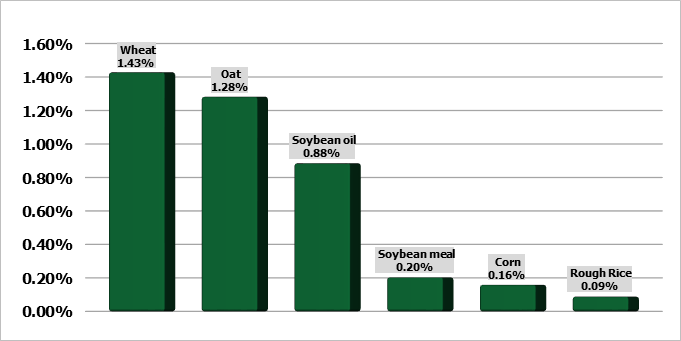 Чикагские соевые бобы выросли в пятницу, при этом рынок был готов к первому недельному росту за полтора месяца, чему способствовал высокий спрос и опасения, что засушливая погода в крупнейшем экспортере Бразилии приведет к снижению урожайности. Фьючерсы на пшеницу и кукурузу также укрепились. Самый активный контракт на сою на Чикагской торговой бирже (CBOT) Sv1 на этой неделе поднялся почти на 1%, достигнув первого недельного роста с начала ноября. Пшеница Wv1 потеряла на этой неделе 2,3%, а кукуруза Cv1 снизилась на 1,2%. К 03:31 по Гринвичу в пятницу цены на соевые бобы подорожали на 0,1% до $13,15-3/4 за бушель, пшеница прибавила 0,2% до $6,17 за бушель, а кукуруза подорожала на 0,1% до 4,79-3/4 за бушель.