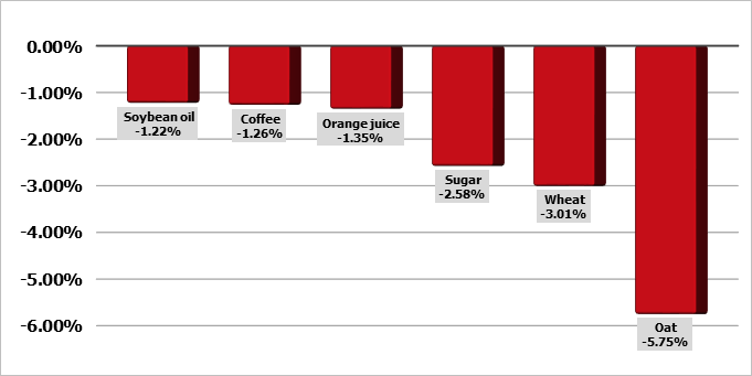 За пределами США цены на мукомольную пшеницу на европейской бирже MATIF снижаются. Кукуруза и соевые бобы снизились на китайских торгах в Даляне.