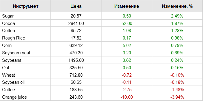 Фьючерсы на сою и пшеницу в США выросли в среду, а покупатели по выгодным ценам раскупили оба товара, которые резко упали в феврале. Майские соевые бобы CBOT подорожали на 17 центов до 14,96 доллара за бушель, а майская мягкая красная озимая пшеница CBOT подорожала на 4 цента до 7,09-1/2 доллара за бушель. Фьючерсы на кукурузу стабилизировались после пяти последовательных сессий снижения, которые привели к снижению цен до самого низкого уровня более чем за шесть месяцев из-за опасений по поводу слабого спроса как на экспортном, так и на внутреннем рынке. Майские фьючерсы на кукурузу на Чикагской товарной бирже выросли на 1/4 цента до 6,30-1/2 доллара за бушель.