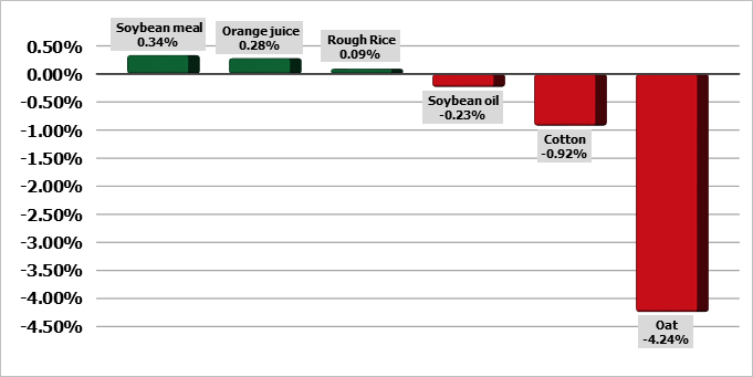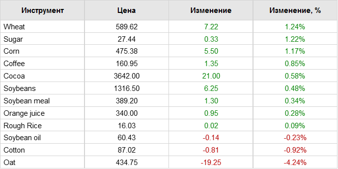 Чикагская пшеница подешевела более чем на 1% во вторник, упав до недельного минимума, поскольку дешевое российское зерно наводнило рынок, а прибытие судов в Украину ослабило опасения по поводу поставок из страны. Фьючерсы на кукурузу и соевые бобы потеряли свои позиции, поскольку на рынок США поступили свежесобранные запасы. Самый активный контракт на пшеницу на Чикагской торговой палате (CBOT) Wv1 снизился на 1,4% до $5,83 за бушель по состоянию на 03:30 по Гринвичу после падения до самого низкого уровня с 12 сентября на уровне $5,82-1/4. Кукуруза Cv1 подешевела на 0,4% до $4,69-3/4 за бушель, а соевые бобы Sv1 подешевели на 0,4% до $13,11-1/4 за бушель.