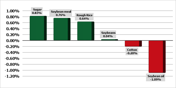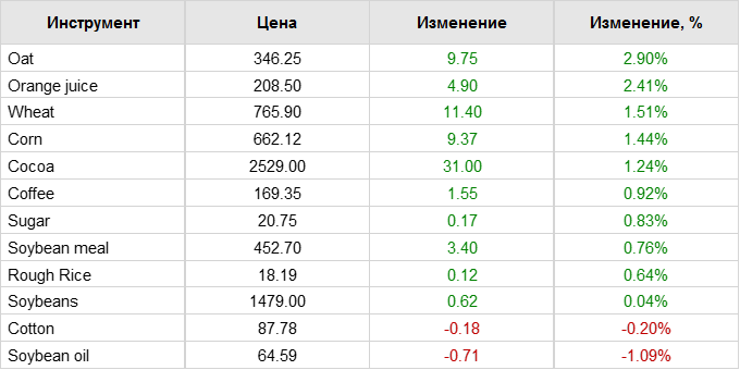 Фьючерсы на сою в Чикаго выросли в среду, поскольку отсутствие дождей в Аргентине поддержало рынок, хотя замедление продаж США в Китай ограничило рост. Наиболее активные контракты на сою на Чикагской товарной бирже (CBOT) выросли на 0,1% до 14,79-1/2 доллара за бушель, по состоянию на 03:48 по Гринвичу пшеница прибавила 0,4% до 7,53-3/4 доллара за бушель, а кукуруза прибавила 0,2% к 6,53 доллара за бушель.