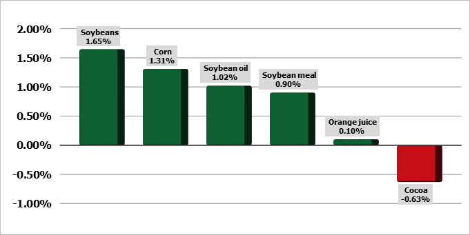Зерновая биржа Буэнос-Айреса сообщила, что прогнозы урожая сои, кукурузы и подсолнечника в Аргентине на 2021/22 год могут быть снижены еще больше из-за более низкой, чем ожидалось, урожайности вследствие неблагоприятных погодных условий. Биржа, которая ранее в этом году снизила оценки производства кукурузы и сои из-за засухи, в настоящее время прогнозирует урожай сои на уровне 42 млн тонн, кукурузы — на уровне 51 млн тонн и подсолнечника — на уровне 3,3 млн тонн. Аргентина является ведущим мировым экспортером соевого масла и шрота, вторым по величине экспортером кукурузы и ключевым мировым поставщиком подсолнечника и производимых из него масла и шрота.