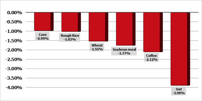 Чикагская кукуруза потеряла позиции в четверг, торгуясь около трехлетнего минимума в начале этой недели, поскольку растущий урожай в США увеличивает запасы со стороны конкурирующего экспортера Бразилии. Пшеница упала, поскольку обильные поставки из Черноморского региона перевесили признаки возобновления спроса со стороны крупных импортеров. Самый активный контракт на кукурузу на Чикагской торговой палате (CBOT) упал на 0,4% до $4,80-1/2 за бушель по состоянию на 03:21 по Гринвичу после достижения во вторник самого низкого уровня с декабря 2020 года на уровне $4,67-3/4 за бушель. Пшеница потеряла 0,6% до $5,85-1/4 за бушель, а соевые бобы подешевели на 0,7% до $13,10-1/4 за бушель. Цены на кукурузу, вероятно, окажутся под давлением на фоне роста мировых поставок. В начале этого года Бразилия произвела рекордный урожай, а урожай в США набирает обороты. Тем не менее, бразильское агентство по снабжению продовольствием и статистике Conab поздно вечером во вторник прогнозировало падение общего урожая кукурузы в Бразилии на 9,1% в цикле 2023/2024 годов.