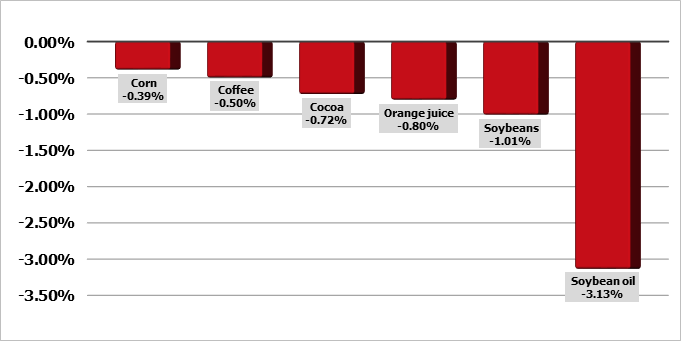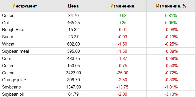Фьючерсы на пшеницу в Чикаго выросли во вторник, компенсировав часть потерь на прошлой сессии с потенциальным снижением урожайности после жаркой и сухой погоды в США и Европе, которая поддержала цены. Соевые бобы и кукуруза выросли, так как неблагоприятная погода на Среднем Западе США вызвала опасения по поводу поставок. Наиболее активные контракты на пшеницу на Чикагской товарной бирже (CBOT) прибавили 0,6% до 6,29-1/2 доллара за бушель по состоянию на 02:19 по Гринвичу. Соевые бобы выросли на 0,4% до 13,67 доллара за бушель, а кукуруза выросла на 0,1% до 4,83 доллара за бушель. Состояние урожая яровой пшеницы в США на прошлой неделе ухудшилось, сообщило правительство в понедельник, поскольку на этой неделе на северных равнинах сохранялись прогнозы на жаркую и сухую погоду. Рейтинги кукурузы в США упали на 1 процентный пункт до 58% от «хорошо» до «отлично», а рейтинги сои остались неизменными на уровне 59% от «хорошо» до «отлично».