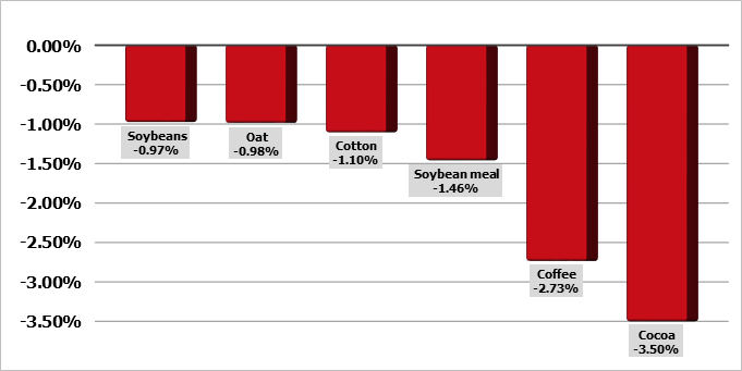 Соевые бобы торговались в четверг с утренним приростом от 7 до 10 центов. В среду контракты были на 5 ¾ цента выше по всем направлениям. Предварительный открытый интерес показал чистые новые покупки по большинству контрактов, увеличившись на 16 317 контрактов по всем контрактам, кроме ноябрьского контракта, по которому произошел отток 21 481 контракта в преддверии истечения срока опционов в пятницу. Контракты на соевое масло снизились на 6-30 пунктов за день. Среднее закрытие ноябрьских фьючерсов на сою в октябре составляет $10,11. Это на 1,44 доллара ниже февральской базовой страховой цены.