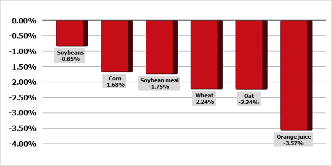 Фьючерсы снижались на 5-5 1/2 цента на рынке CBT в среду до полудня. Цены на яровую пшеницу в среду торговались с двузначными потерями. Трейдеры оценивают экспортные продажи пшеницы старого урожая в диапазоне от 75 тыс. тонн до 400 тыс. тонн. Ожидается, что заказы на новый урожай превысят данные FAS на целых 225 тыс. тонн. По данным StatsCan, площадь пшеницы на 2023 год составила 26,98 млн акров. Это на 1,58 млн акров больше, чем в прошлом году, и это третий годовой прирост подряд. Трейдеры ожидали фиксированного повышения на 1 миллион, думая, что это было в пределах оценок. Подтверждено, что площадь яровой пшеницы составляет 19,39 млн акров, что является самым большим показателем с 2001 года.