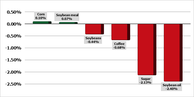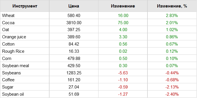 Утром в четверг соевые бобы торговались на 1-2 цента выше. Ноябрьский индекс в течение ночи оставался в диапазоне 9¼ цента. Фьючерсы на соевый шрот подешевели на 5-5,70 долларов на закрытии после того, как в начале дня в декабре был зафиксирован новый контрактный максимум. Соевое масло завершило день с трехзначным ростом на 128 пунктов. Министерство сельского хозяйства США объявило о продаже 126 тыс. тонн сои в Китай в среду утром. Ожидается, что еженедельный отчет об экспортных продажах покажет от 750 тыс. тонн до 1,5 млн тонн соевых бобов, проданных за неделю, завершившуюся 19 октября. Заказы на соевый шрот оцениваются в пределах от 250 тыс. до 500 тыс. тонн, при этом продано менее 10 тыс. тонн соевого масла.