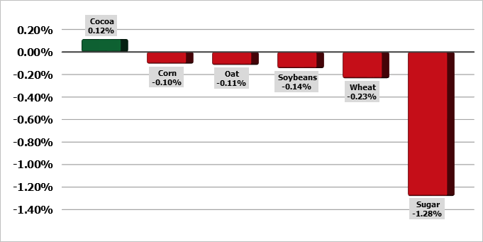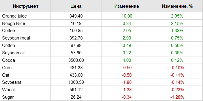 Кукуруза на Чикагской бирже выросла во вторник третью сессию подряд, достигнув самого высокого уровня более чем за неделю, в то время как соевые бобы укрепились, поскольку более медленные, чем ожидалось, темпы сбора урожая в США поддержали цены. Пшеница выросла до самого высокого уровня почти за неделю. Самый активный контракт на кукурузу на Чикагской торговой бирже (CBOT) прибавил 0,2% до $4,82-1/4 за бушель по состоянию на 03:01 по Гринвичу, после достижения самого высокого уровня с 15 сентября на уровне $4,83-1/2 ранее в ходе сессии. Соевые бобы подорожали на 0,7% до $13,06-1/4 за бушель, а пшеница выросла на 0,7% до $5,93 за бушель.