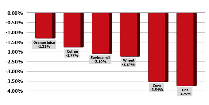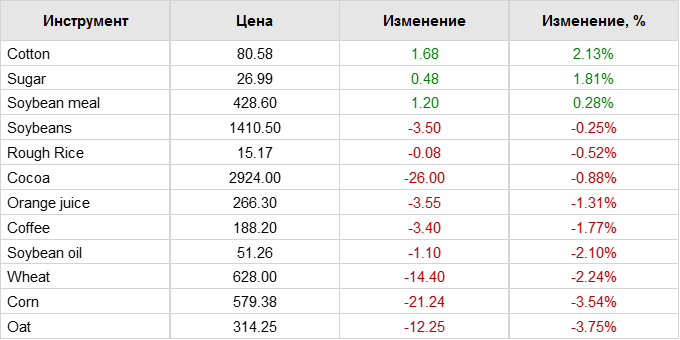 Цены на кукурузу упали еще на 3-7 центов в преддверии еженедельного отчета по экспортным продажам. После трех красных сессий в начале недели майские фьючерсы потеряли 21 3/4 цента. Кукуруза старого урожая подверглась длительной ликвидации, так как в мае было потеряно 26 тыс. открытых контрактов, а в июле — 5 тыс., согласно предварительным данным CME. Падение на 5 центов в среду привело к снижению контракта на 36 центов с 18 апреля. Другие передние месяцы также закрылись в минусе в среду, вернувшись домой с 4 3/4 до 6 3/4 центов в минусе. По состоянию на вечер среды декабрьская кукуруза потеряла 4 1/2 цента за неделю.