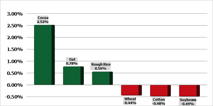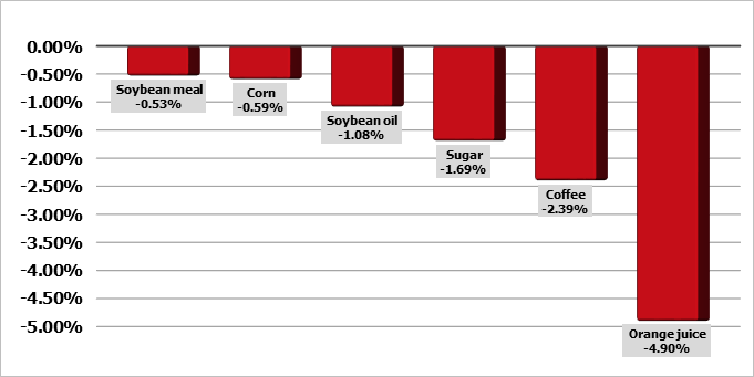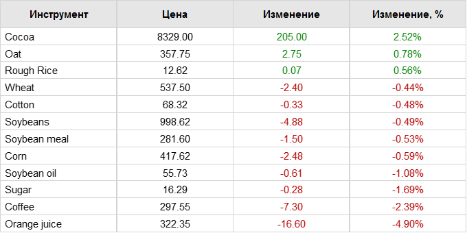 Самый активный контракт на сою на Чикагской товарной бирже (CBOT) ZS1! снизился на 0,78% до 10,13 доллара за бушель к 01:05 по Гринвичу. Кукуруза ZC1! снизилась на 0,3% до 4,17-6,8 доллара за бушель.