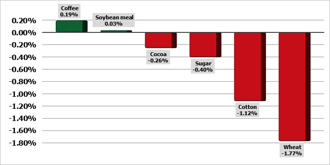 Фьючерсы на пшеницу торговались с потерями во вторник утром. Пшеничный комплекс закрылся смешанно на трех рынках, при этом яровая пшеница была наиболее сильной. Фьючерсы на яровую пшеницу в Чикаго снизились на 2-3 цента, июль вырос на 17 ½ центов на прошлой неделе.
