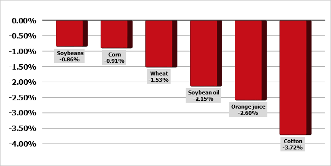 Вчера утром был опубликован еженедельный отчет Министерства сельского хозяйства США по экспорту за рубежом. По данным Kluis Commodity Advisors, чистые продажи кукурузы в период с 14 по 20 октября составили 264 000 метрических тонн, что ниже ожиданий участников рынка. Аль Клуис говорит, что отчет был медвежьим для цен.