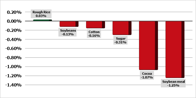 Фьючерсы на пшеницу в среду утром демонстрировали смешанную динамику. Фьючерсы Chicago SRW выросли на 10–11 центов в первые месяцы. KC HRW показал близкий рост на 9–14 центов к закрытию. Яровая пшеница MPLS выросла на 4–7 центов в качестве окончательного диапазона во вторник. Еженедельный отчет Crop Progress показал, что рейтинги состояния яровой пшеницы снизились на 4% до 69% в категориях «хорошо» и «отлично». Индекс Brugler500 снизился на 10 пунктов за неделю до 369. Экспорт мягкой пшеницы из ЕС составил 3,93 млн тонн с 1 июля по 23 августа, что почти на 1,1 млн тонн меньше, чем за тот же период прошлого года.