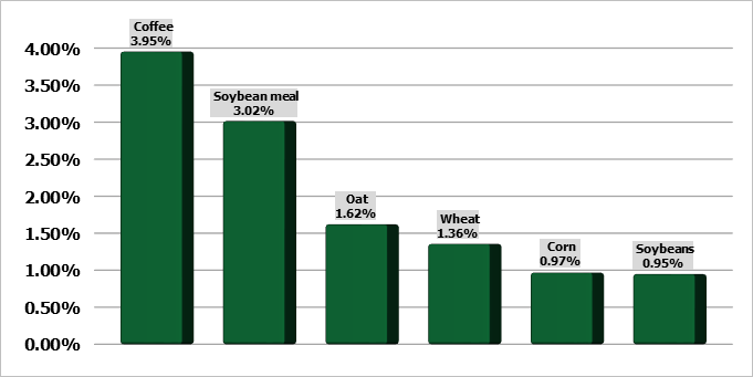 Наиболее активные контракты на сою на Чикагской товарной бирже (CBOT) прибавили 0,7% до 14,99-3/4 доллара за бушель по состоянию на 00:15 по Гринвичу, в то время как пшеница прибавила 0,4% до 7,77-3/4 доллара за бушель, а кукуруза осталась неизменной на уровне 6,74-3/4 доллара за бушель. По словам аналитиков, фьючерсы на сою выросли после того, как ожидаемые дожди в выходные дни в Аргентине пропустили большую часть засушливого региона выращивания.