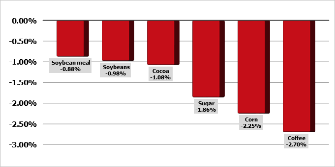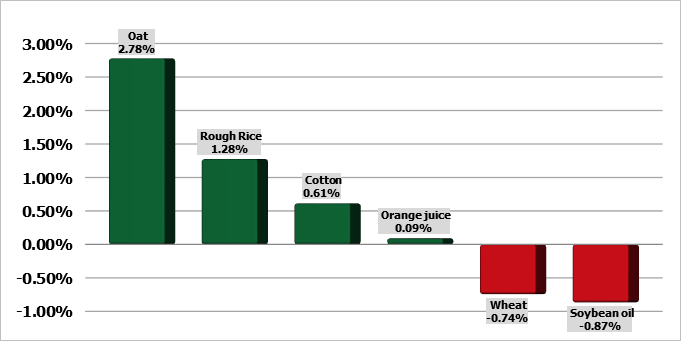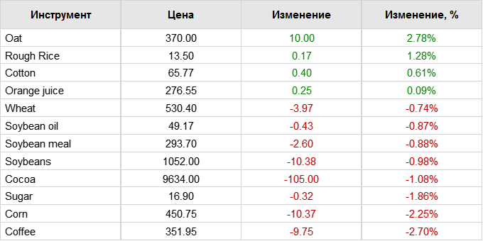 Соевые бобы торговались с падением контрактов на 12-14 центов в среду. Фьючерсы на соевую муку упали на 2,20 доллара за тонну за день, а фьючерсы на соевое масло — на 54 пункта. Данные о ходе уборки урожая, опубликованные во вторник днем, показали, что на воскресенье было посеяно 76% урожая, что превышает средний показатель в 68%, но ниже среднего прогноза рынка в 77%. Из 18 основных штатов только Кентукки (-5%), Миссисипи (-7%) и Огайо (-10%) отставали от своих пятилетних средних показателей. Национальный урожай вырос на 50%, что выше среднего показателя в 40%. Состояние посевов будет сообщено в следующий понедельник.