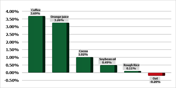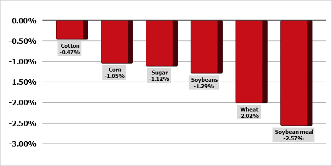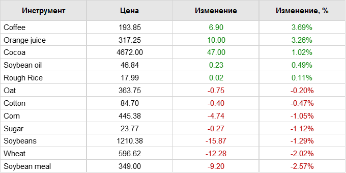 Чикагские соевые бобы и кукуруза в пятницу снизились, поскольку повышение оценок урожая в Аргентине усилило ценовое давление со стороны крупных поставок из Южной Америки, что может ограничить экспорт из США. Урожай сои и кукурузы в Аргентине был пересмотрен в сторону повышения в четверг Зерновой биржей Буэнос-Айреса, поскольку ожидаемая урожайность обеих зерновых культур улучшилась из-за увеличения количества осадков. Министерство сельского хозяйства США (USDA) сообщило, что экспортные продажи сои в США за последнюю неделю составили 560900 тонн, что ниже диапазона торговых ожиданий, в условиях жесткой конкуренции со стороны ведущего мирового поставщика Бразилии. Самый активный контракт на сою на Чикагской торговой бирже (CBOT) Sv1 снизился на 0,1% до $12,21-1/4 за бушель по состоянию на 10:32 по Гринвичу, а кукуруза Cv1 снизилась на 0,7% до $4,48-3/4 за бушель и Пшеница Wv1 снизилась на 1,0% до $6,06 за бушель.