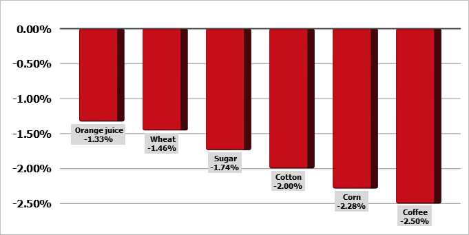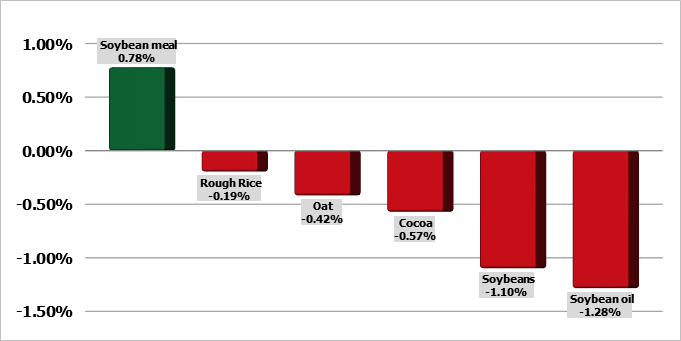 Пшеничный комплекс испытывал небольшую слабость в полдень вторника, контракты снижались на всех трех рынках. Фьючерсы на SRW в Чикаго снижались на 4-7 центов. Контракты на HRW в Канзас-Сити были на 6-7 центов ниже. Яровая пшеница MPLS подешевела на 3-4 цента. Еженедельный отчет о ходе посевных работ показал, что посеяно 30% яровой пшеницы, что выше среднего пятилетнего показателя в 21%, но ниже прогноза в 34%. Всходы составили 5%, что соответствует норме. Урожай озимой пшеницы в США по состоянию на 27 апреля составил 27%, что на 5 процентных пунктов выше нормы. Рейтинг озимой пшеницы вырос на 4% до 49% «хорошо/отлично». По данным Европейской комиссии, экспорт мягкой пшеницы в сезоне 2024/25 с 1 июля по 27 апреля составил 17,467 млн тонн. Это на 9,7 млн тонн меньше, чем за аналогичный период прошлого года.