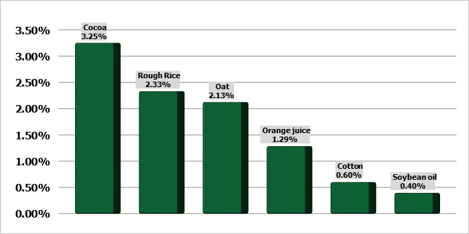 Соевое масло и шрот, побочные продукты переработки соевых бобов, за последние две недели выросли на 5-9%. Контрактные цены на соевый шрот в январе 2024 года на Даляньской товарной бирже выросли до 4 075 юаней за тонну (559 долларов США за тонну) 25 августа, что на 5% выше, или 192 юаня за тонну, с 3 883 юаней за тонну (533 доллара США за тонну) 14 августа из-за сокращения внутренних поставок в Китае. Цены на январский контракт на соевое масло закрылись на уровне 8 486 юаней/т (1 164 долл. США/т) 25 августа, что на 9% выше, или 698 юаней/т по сравнению с 14 августа, когда контракт оценивался в 7 788 юаней/т (1 068 долл. США/т).